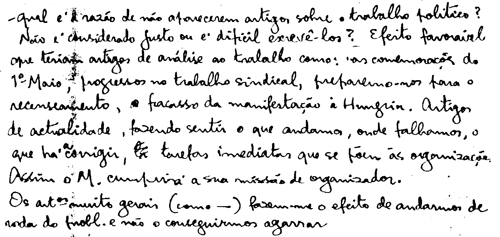 Manuscrito de Francisco Martins Rodrigues criticando a falta de debate político no PCP (1956-7?)